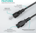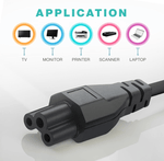 Universal Compatibility: The 3-prong IEC C5 power cord is compatible with most laptop power bricks, monitors, scanners, printers, and other electronic devices. Ideal as a replacement power supply cable.